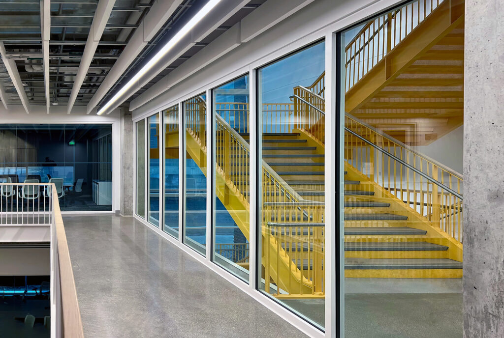 “One of the primary reasons we chose the product was to create transparency for safety and security,” says Geoff Lisle, Principal with BSA. “The natural light coming into the area allows visibility in stairwells and lets you see what’s going on.”