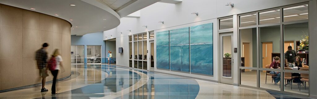 That is why central to this building’s design are several simulation labs, practice labs, and mock operating rooms where students can observe instructors and each other as they perform their tasks. Because these labs are in areas where a 1-hour fire rating has to be maintained, the architects chose to combine vision, transparency, and fire safety with SuperLite II-XL 60 in GPX Architectural Series Framing.