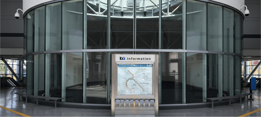 When the BART Milpitas Transit center finally opened on June 13, 2020, it is clear that it was “mission accomplished” for the design team. The architects successfully brought the outside in by incorporating three skylights (as shown in this drone video) to allow an abundance of natural light to illuminate the station. The center skylight was placed directly above the welcome hall while the two skylights on either side allowed natural light to flow vertically through two levels – from the entrance/ticketing level down to the tracks where the train cars are.
