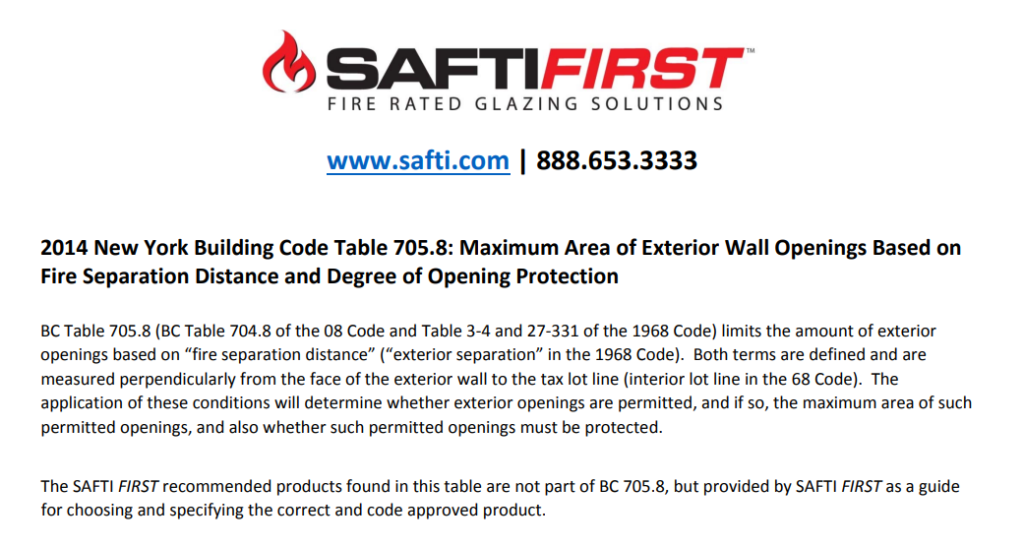 The latest version of the Chapter 7 Tables that show the correct and code approved applications for fire rated glass