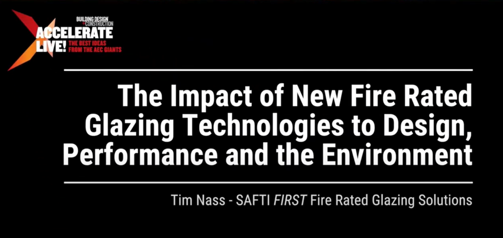 In this short, informative and entertaining talk, SAFTI FIRST®’s VP of Sales Tim Nass speaks about the emerging applications for fire rated glazing technology. He discusses how the impacts of these developments have opened new opportunities to bring transparency and light to any fire rated space, and pushed fire rated glazing system manufacturers to design products that appear and perform just like any other glazing system in the project.