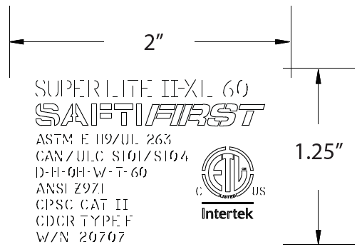 Effective with the 2012 IBC, glazing manufacturers are required to stencil onto the glazing product itself the testing standards the products has passed from a nationally recognized testing laboratory (NRTL). The stencil features the marking code noted in Table 716.1(1) and appears similar to this sample in a 2” x 1.25” format: