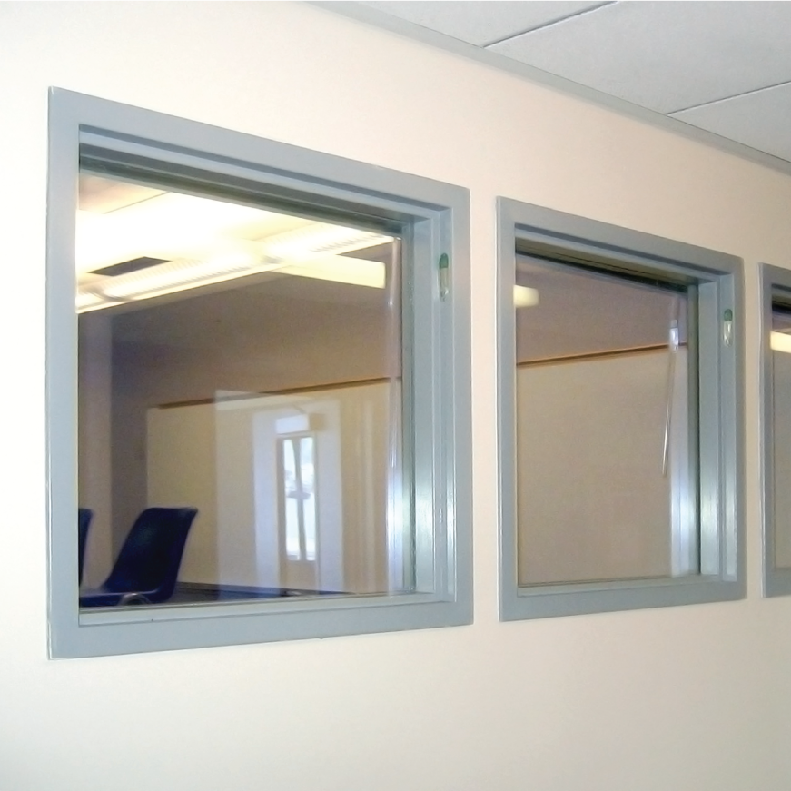 Our fire protective glass can be used in the following applications: 45 minute interior fire rated windows or openings up to 25% of the wall area; 20-45 minute fire rated doors; 45 minute fire rated sidelites and transoms; 45 and 90 minute exterior fire rated windows or openings depending on the fire separation distance; 60-180 minute fire rated door vision lites up to 100 square inches.