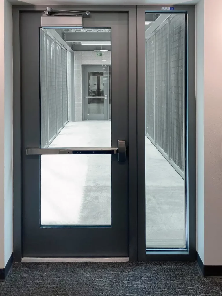 Fire rated doors are now able to meet the architect’s desires for maximum vision and light when specifying fire rated entrance systems. Traditionally, the typical fire rated door size is 3 feet wide by 7 feet tall. Sometimes, it may extend to 8 feet. tall. Adding full vision to rated doors using fire rated glazing make for a more attractive and inviting entrance to any space. SAFTI FIRST®’s full-vision GPX Builders Series Doors, fire rated to 90 minutes and in sizes to 4.5 feet wide by 10 feet tall in single doors and 8 feet wide by 10 feet tall in pairs, gives greater vision for entrances or other door uses where the feeling of grandeur is desired. These larger doors can eliminate the need for a transom to provide a light-filled design. GPX Builders Series Doors come standard or in narrow style, with custom hardware options and multiple finishes that including architectural paint or cladding.