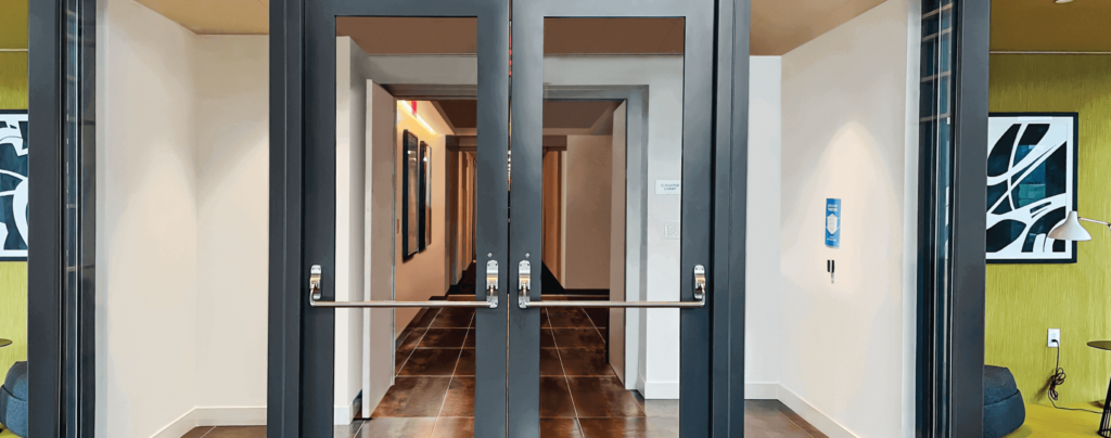 Fire rated aluminum framing with narrow profiles and uniform sightlines. Used with 45 minute glazing for fire protective interior and exterior applications.