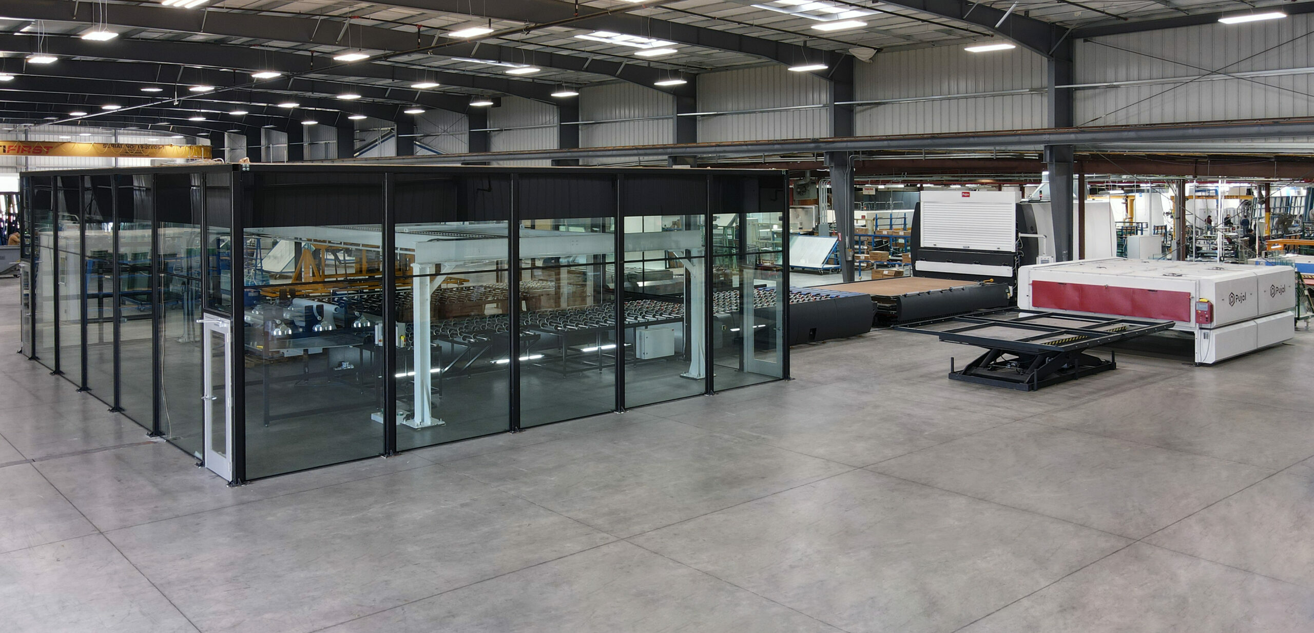 With our Pujol 100+ laminating line can, we can also fabricate colored glass; decorative glass with organic inserted-fabric, metals, stones and papers; mirrored or one-way glass; switchable glass and bird-friendly glass.